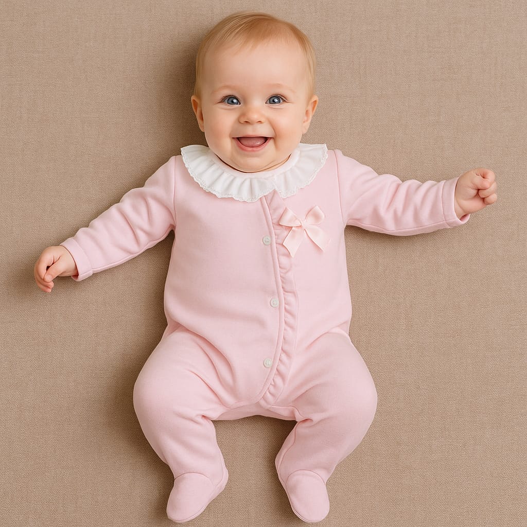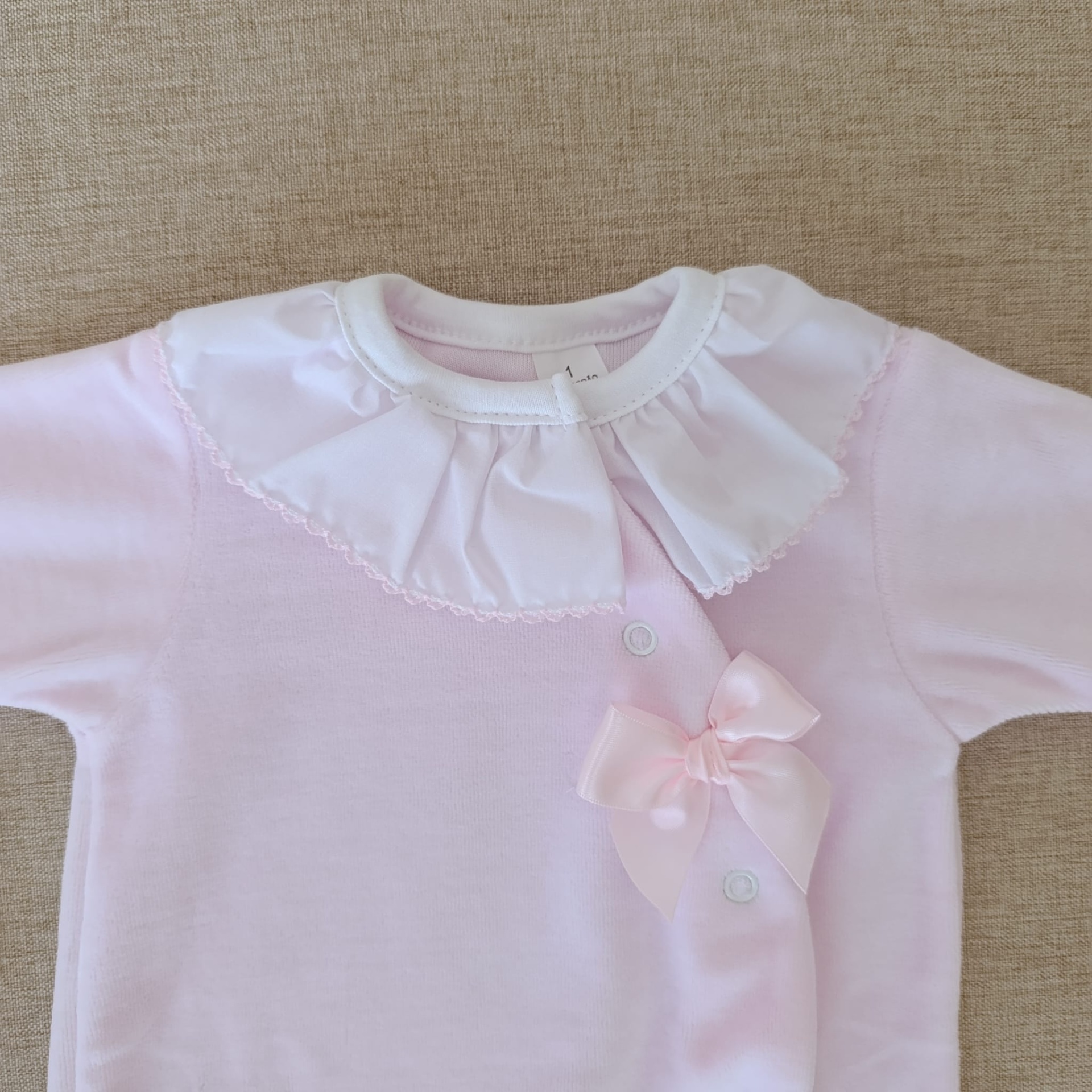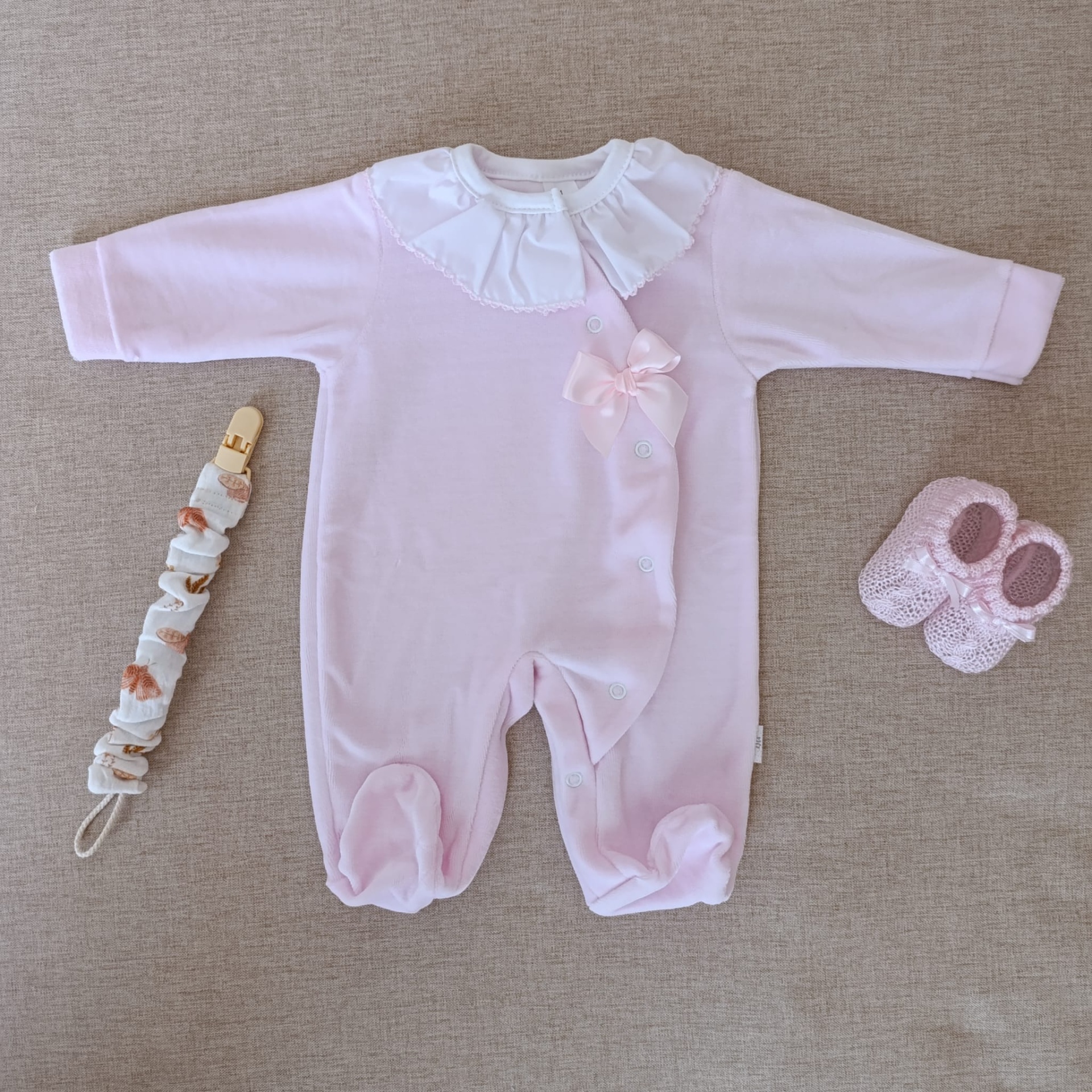 Babygrow em veludo com folho e laço grande - Rosa claro 15,40 € Desconto de %. Partilhar Compre este artigo e ganhe 15 Pontos! Saber mais Tamanho 1 mês 2 meses Comprar Contactar Babygrow em veludo com folho e laço grande. Estação: Outono/Inverno