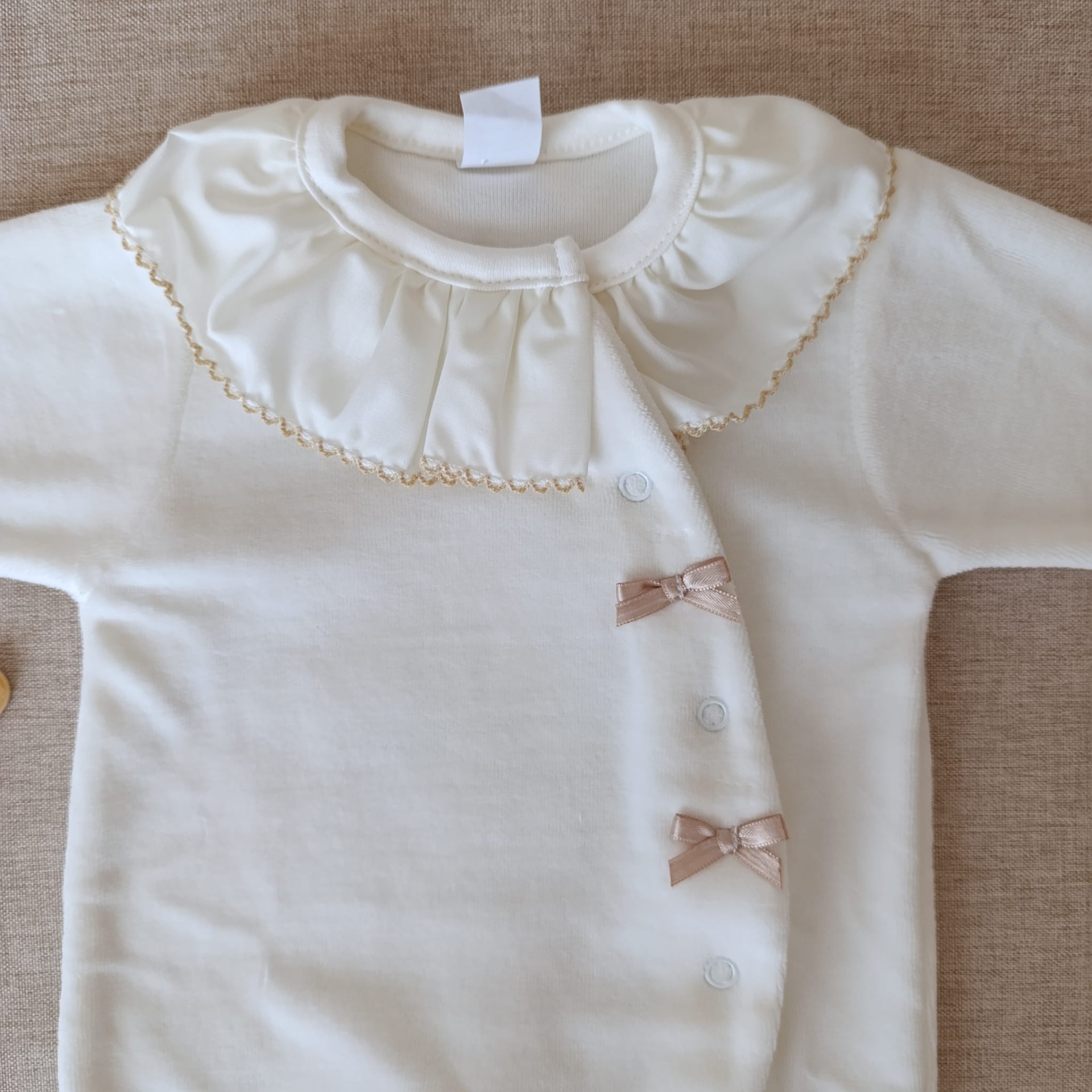 Babygrow em veludo com folho e laços - Pérola 15,40 € Desconto de %. Partilhar Compre este artigo e ganhe 15 Pontos! Saber mais Tamanho 0 meses 1 mês 2 meses Comprar Contactar Babygrow em veludo com folho e laços a contornar a zona de fecho. Estação: Outono/Inverno