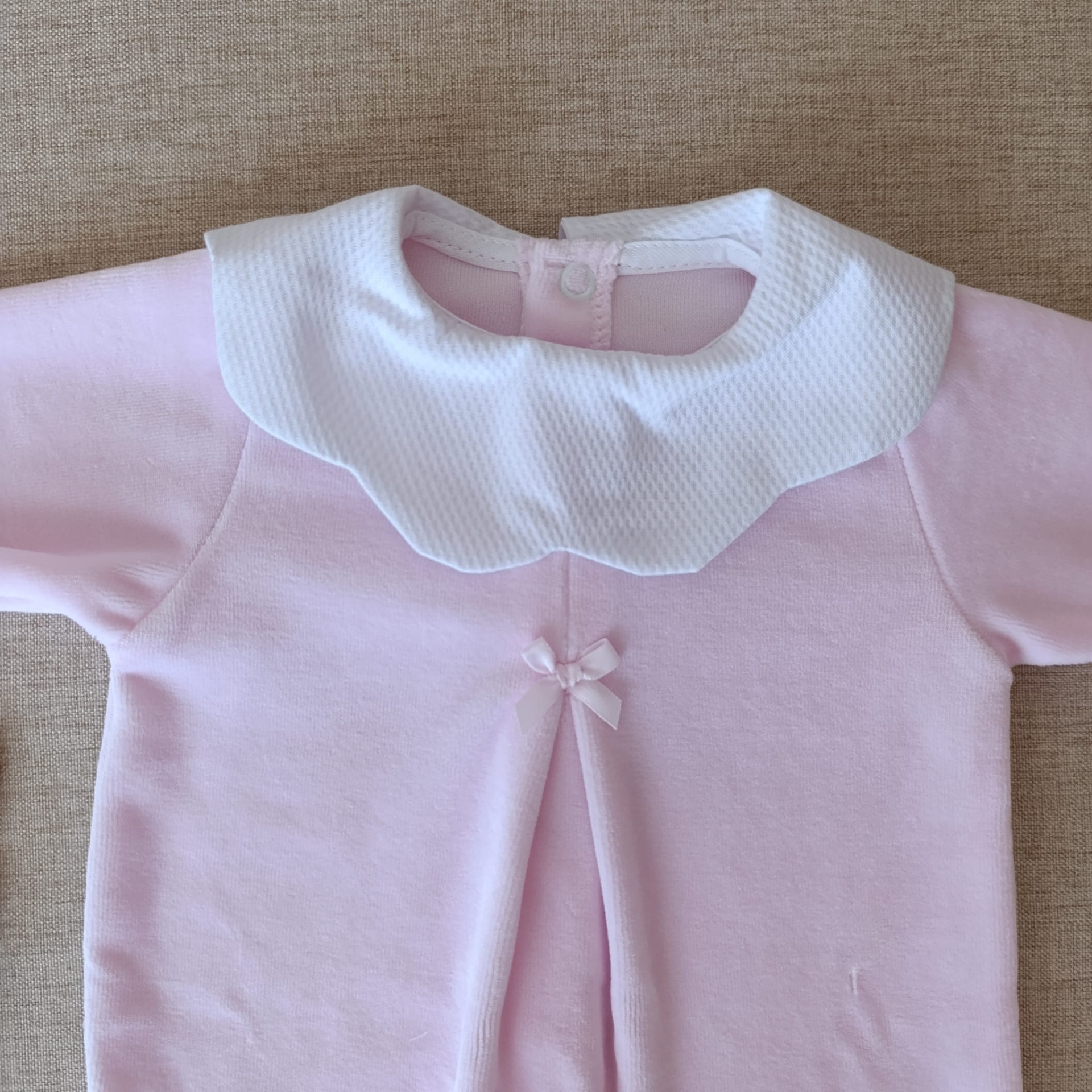 Babygrow em veludo com gola redonda e laço - Rosa claro 15,40 € Desconto de %. Partilhar Compre este artigo e ganhe 15 Pontos! Saber mais Tamanho 1 mês 2 meses Comprar Contactar Babygrow em veludo com gola redonda e laço. Estação: Outono/Inverno