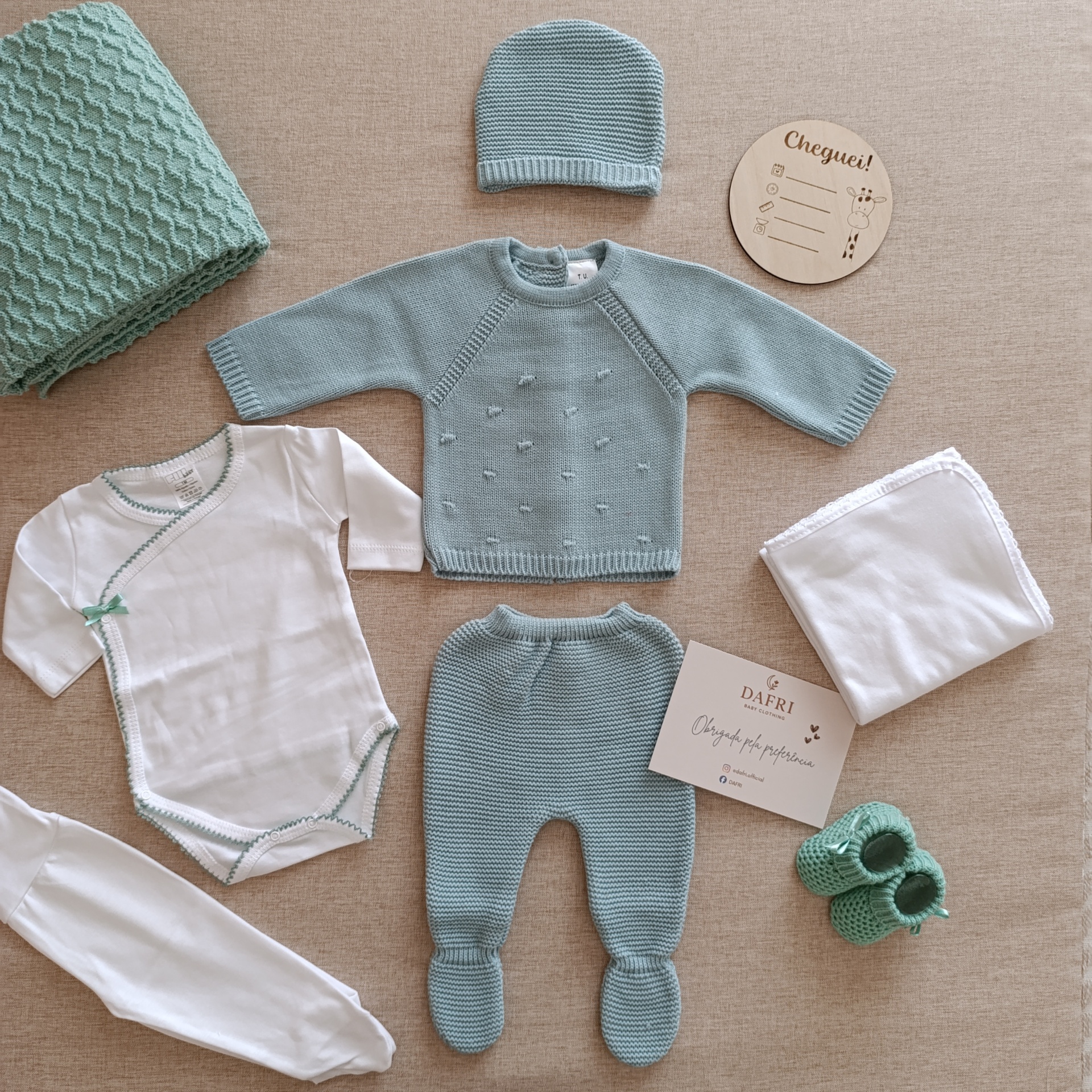 Box pompom - verde água 66,20 € Desconto de %. Partilhar Compre este artigo e ganhe 66 Pontos! Saber mais Personalização com nome Não Sim Nome a bordar Bordado na manta - 3,90 € Bordado no body - 1,90 € Bordado nas calças do body - 1,90 € Bordado na fralda - 2,90 € Bordado na camisola de malha - 2,90 € Comprar Contactar Kit completo de Outono/Inverno O kit completo é composto por manta, conjunto de malha, body e calças, fralda, carapins e placa “Cheguei!” ⚠ Se quiser adicionar mais artigos à sua BOX basta adicionar ao seu carrinho e colocaremos todos os artigos numa só BOX. ⚠ Se quiser bordar algum dos artigos com o nome do bebé, basta escrever o nome do bebé no campo "Nome a bordar" Informações adicionais: Conjunto de malha: tamanho único (0-3 meses) Body e calças: 1 mês Carapins: tamanho único (0-3 meses)