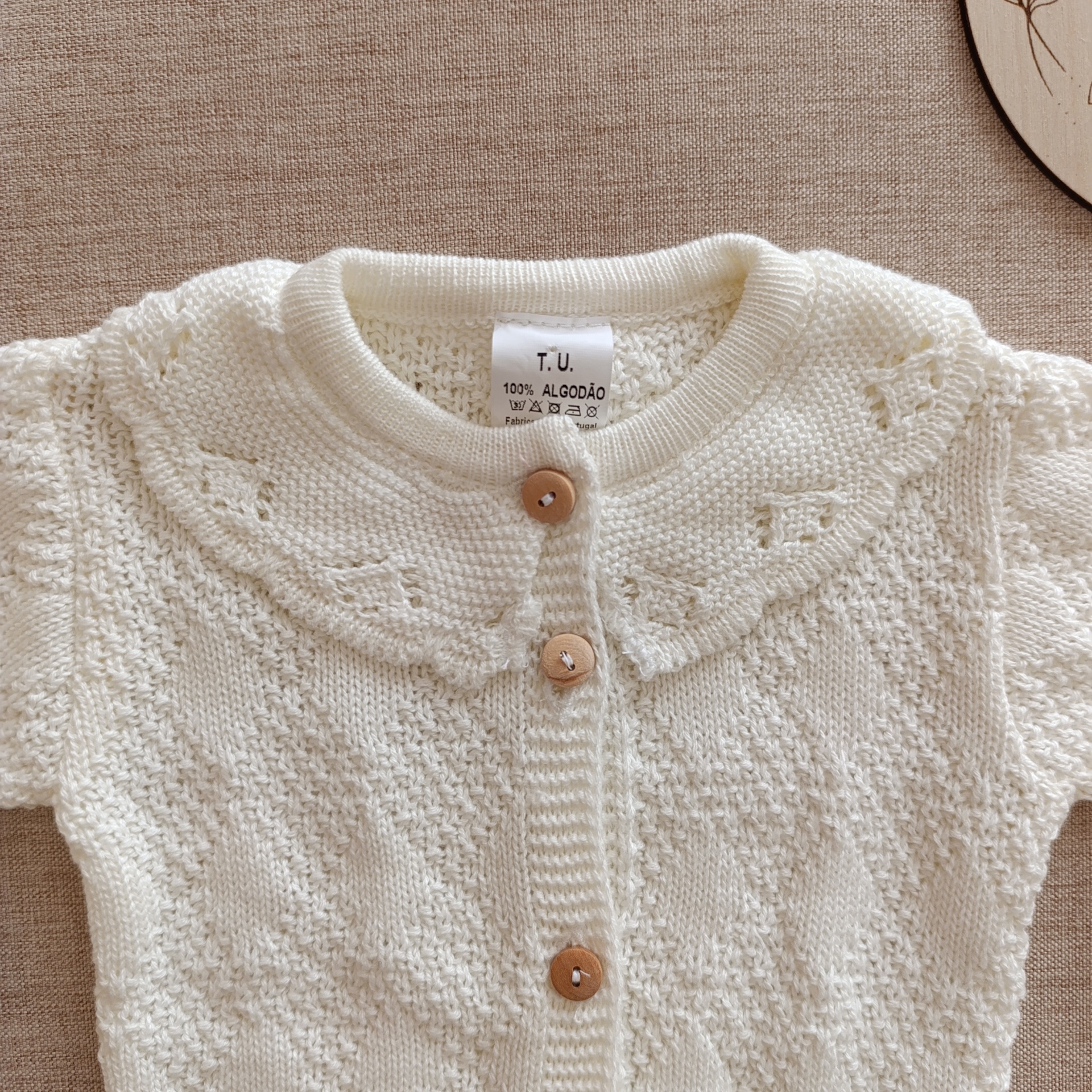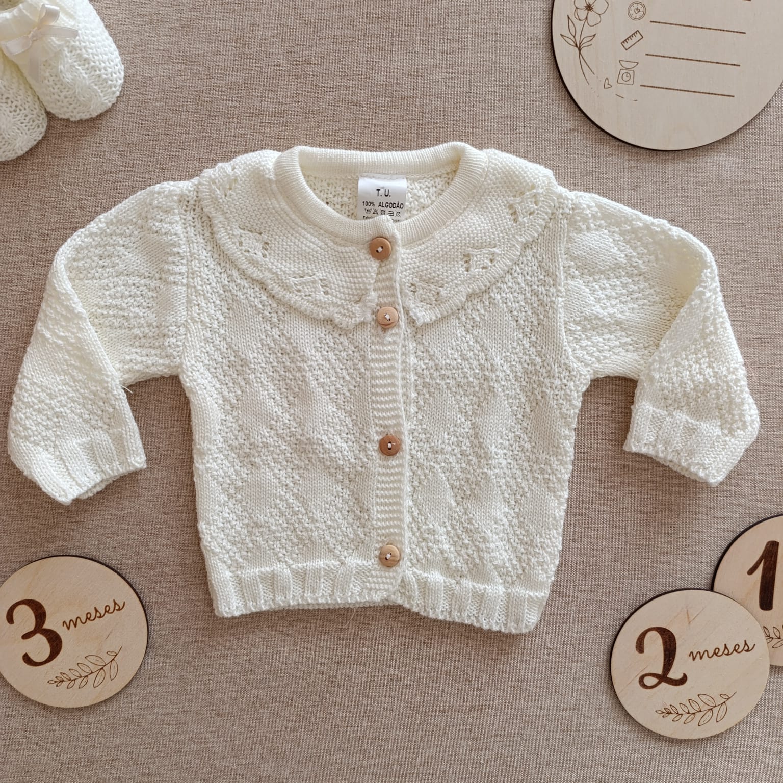 Casaco trabalhado com gola - pérola 11,90 € Desconto de %. Partilhar Compre este artigo e ganhe 11 Pontos! Saber mais Comprar Contactar Este casaco é sem dúvida a peça chave do look! Delicado, elegante e super suave, este casaco fica perfeito com qualquer roupinha. Desde a mais básica até aos mais trabalhado 🧡 Composição: 100% algodão Tamanho: tamanho único (0-3 meses)