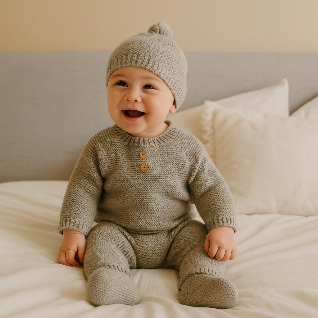 Conjunto de malha botões - Cinzento 19,90 € Desconto de %. Partilhar Compre este artigo e ganhe 19 Pontos! Saber mais Tamanho 0-3 meses Comprar Contactar Conjunto de malha grossa (Outono/Inverno) Cor: Cinzento Composição: camisola com abertura nas costas (botões), calças com pés e gorro