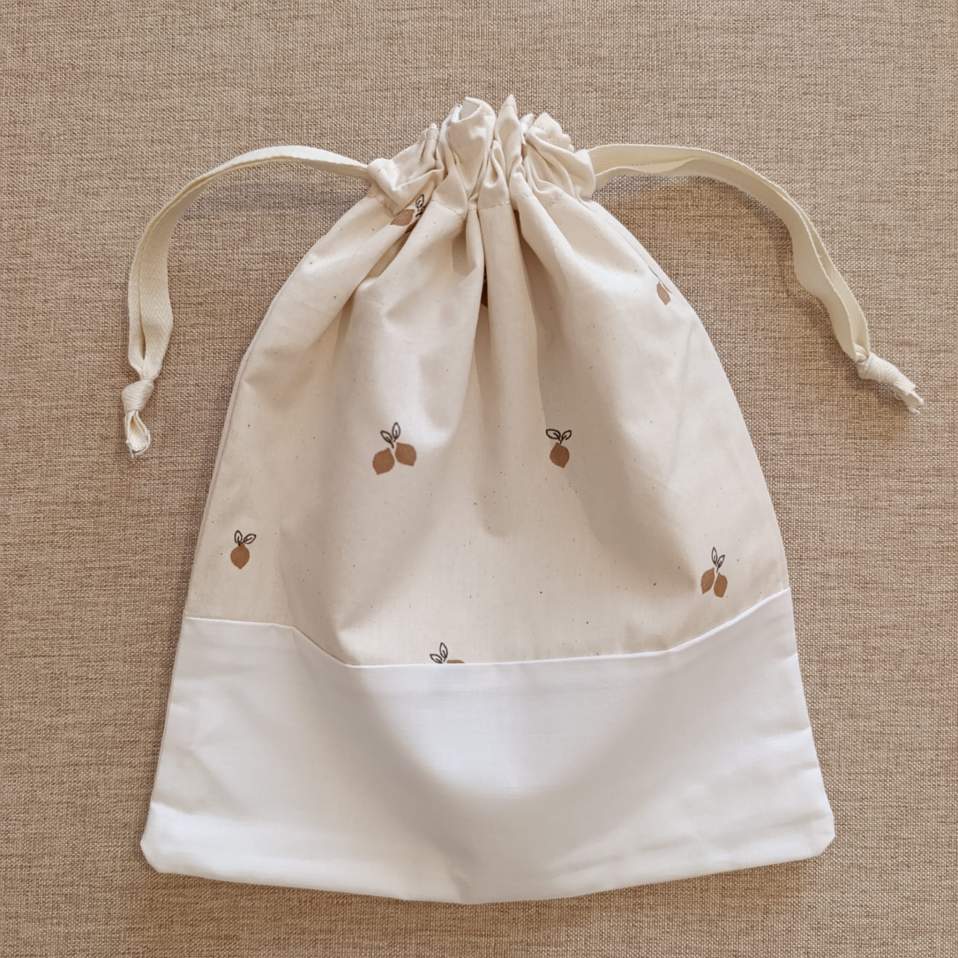 Saco de primeira roupinha - limões com barra 9,80 € Desconto de %. Partilhar Compre este artigo e ganhe 9 Pontos! Saber mais Nome a bordar Bordar nome no saquinho - 2,90 € Comprar Contactar Este saco é feito em tecido 100% algodão e é forrado. Foi pensado para guardar as roupinhas do bebé quando for para a maternidade, viajar, ... Medidas: Aprox. 25cm x 30 cm Nota: a cor dos atilhos pode variar ligeiramente. Garantimos que ficará sempre a condizer com o saco.