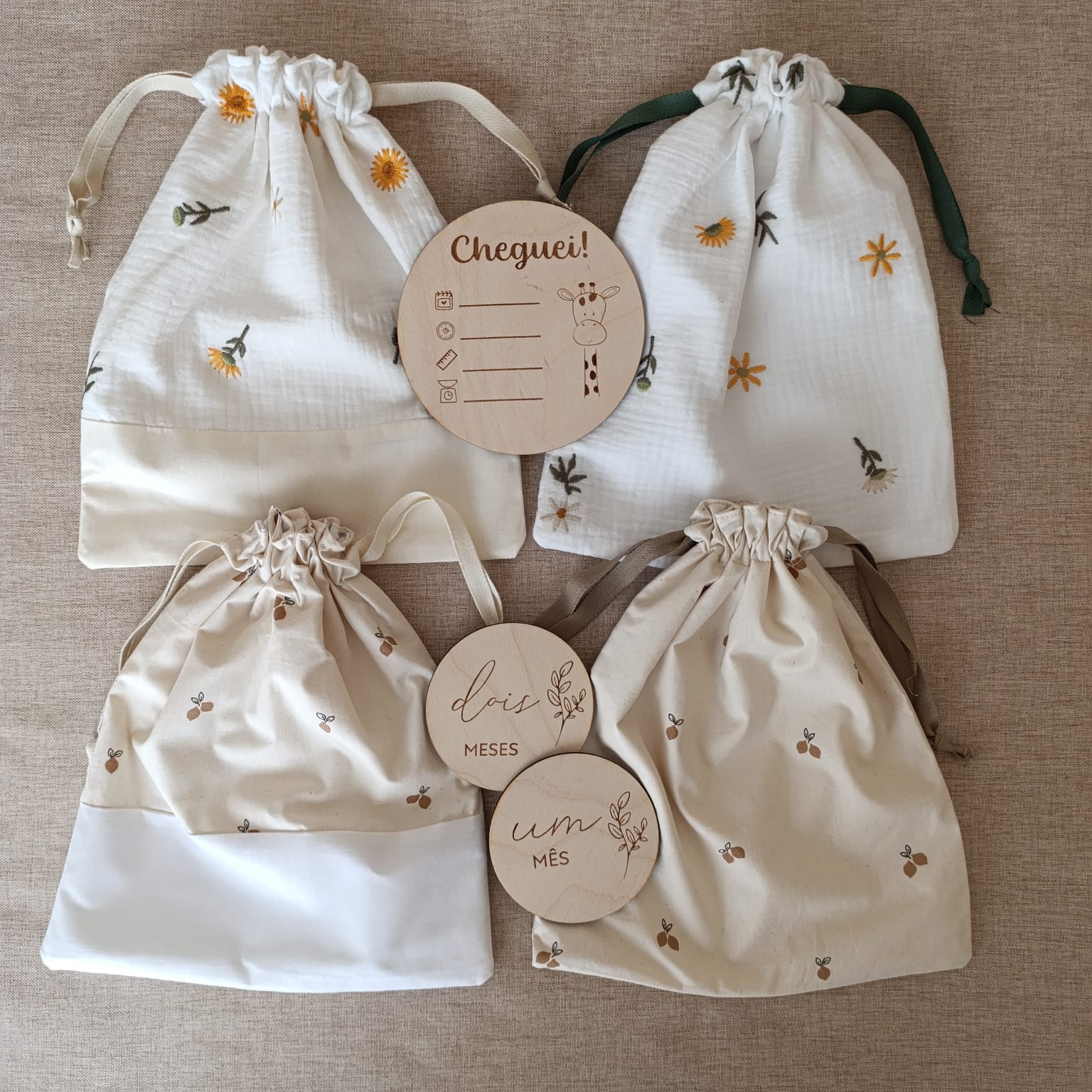 Sacos de primeira roupinha (Personalizável) 9,80 € Desconto de %. Partilhar Compre este artigo e ganhe 9 Pontos! Saber mais Design Flores com atilho verde Flores com barra e atilho bege Limões com atilho castanho Limões com barra e com atilho bege Comprar Contactar Sacos forrados 100% algodão 20cm x 30 cm (aproximadamente) Podem ser persoalizados com o nome ou iniciais do bebé